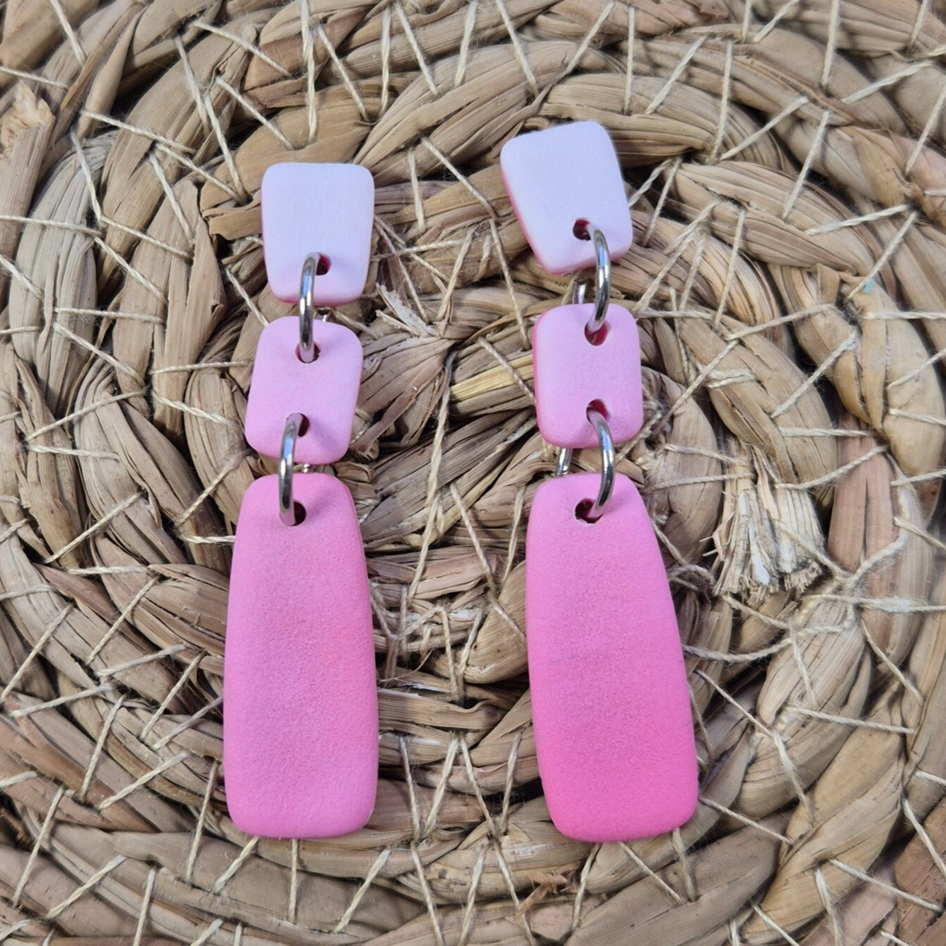 Slanke oorbellen bestaande uit stud met bewegende hanger. De multicolor (pink) versie nu met gratis studs (small rond) zolang de voorraad strekt.