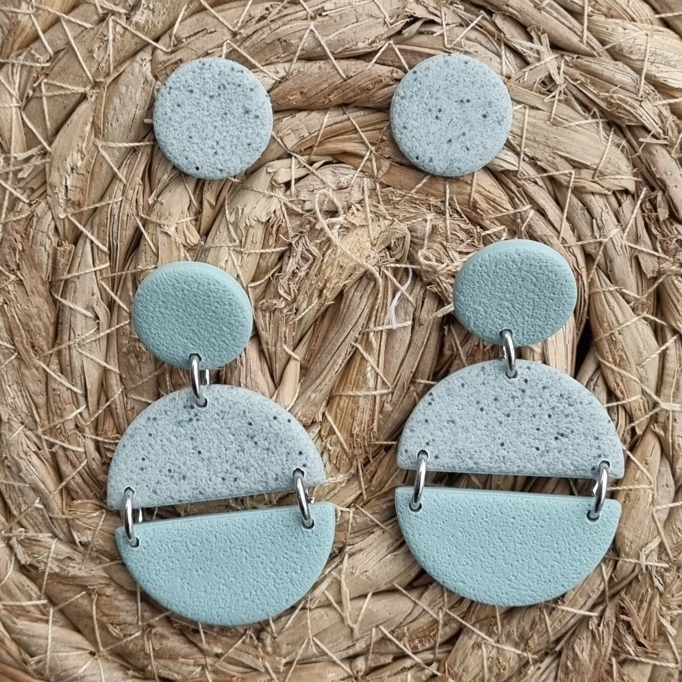 Modern gevormde oorbellen bestaande uit studs met een bewegende hanger.