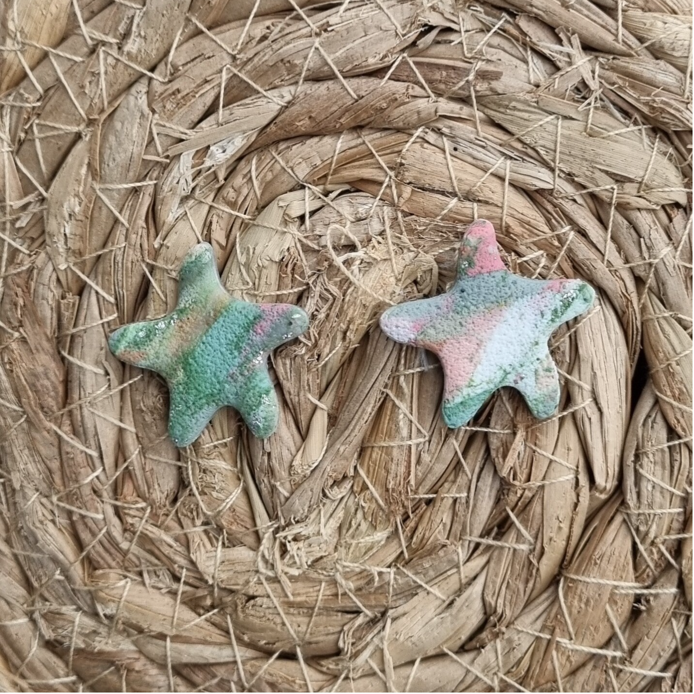 Alle oorbellen uit deze collectie zijn gemaakt met lichtgewicht, direproefvrij en vegan polymeer klei.